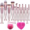 BS-MALL Pink Stand Up Makeup Brushes Set Synthetic Hair 14PCS Private Label Makeup Brushes with Makeup Sponge and Cleaner