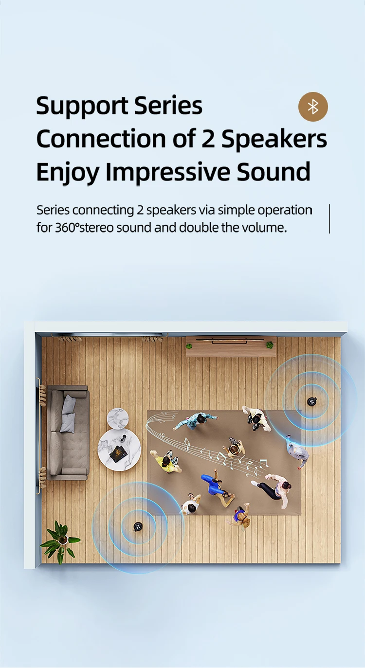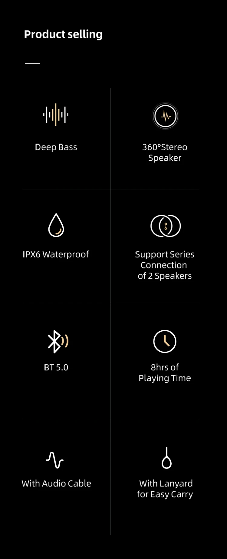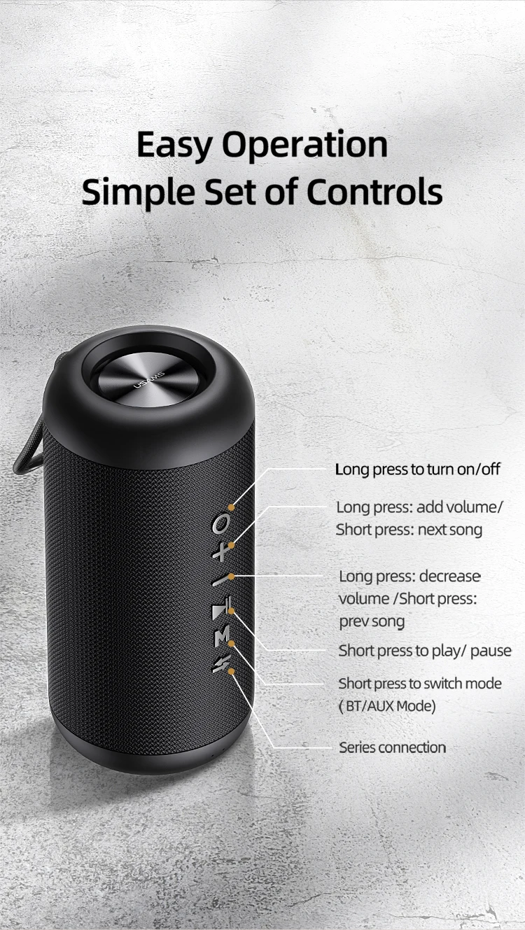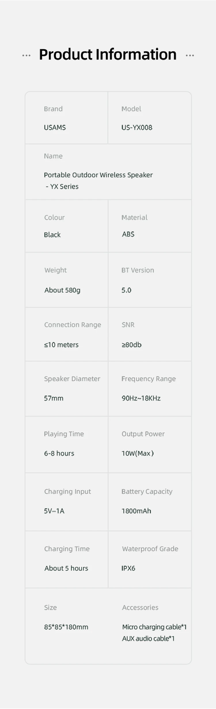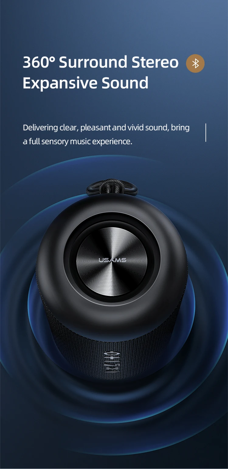 USAMS YX008 Portable IPX6 Waterproof BT5.0 Mini Music Audio Stereo Outdoor Wireless Speaker
